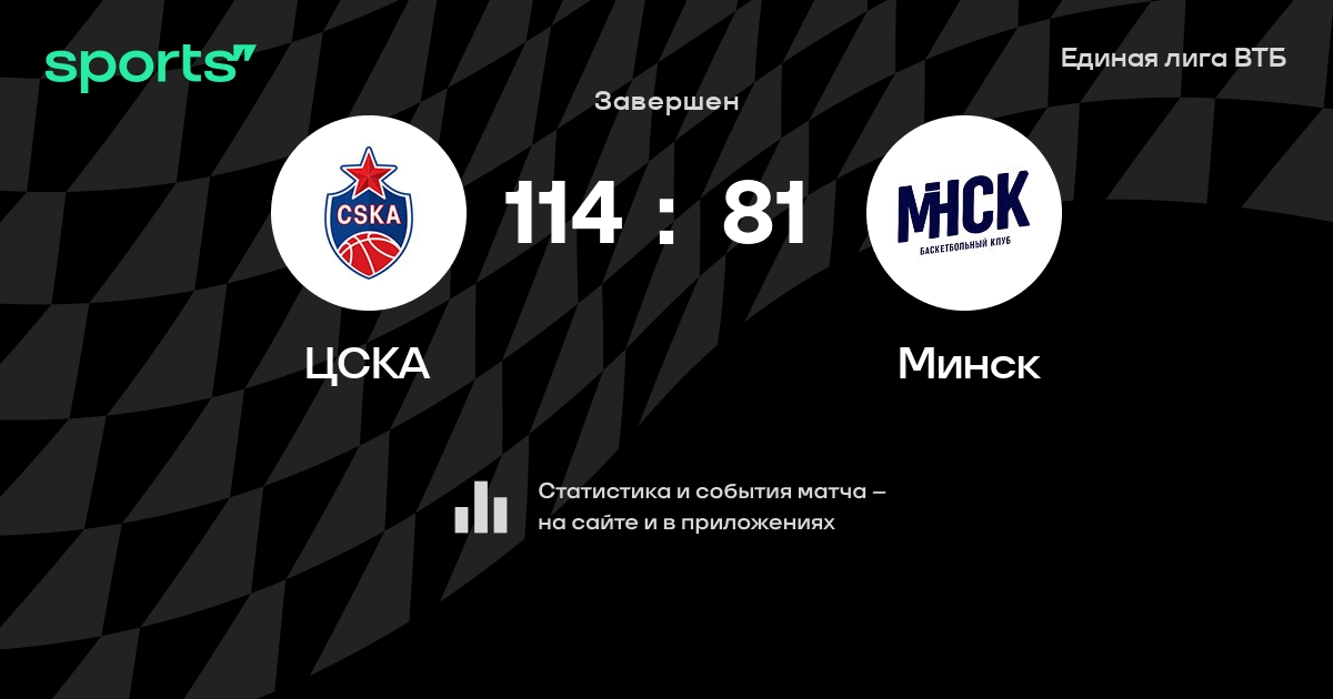 В прошедшем матче в рамках турнира Единая лига ВТБ состоялась встреча команд ЦСКА - Минск в городе Москва (Россия) на стадионе УСК ЦСКА им. А.Я. Гомельского (вместимость - 4500)