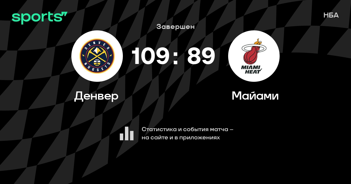 В прошедшем матче в рамках турнира НБА состоялась встреча команд Денвер - Майами в городе Денвер (США) на стадионе Ball Arena (вместимость - 18007) со счетом 109 : 89.
