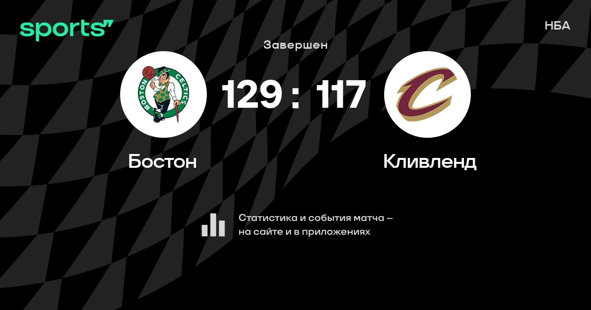 В прошедшем матче в рамках турнира НБА состоялась встреча команд Бостон - Кливленд в городе Бостон (США) на стадионе TD Garden (вместимость - 18624) со счетом 129 : 117.