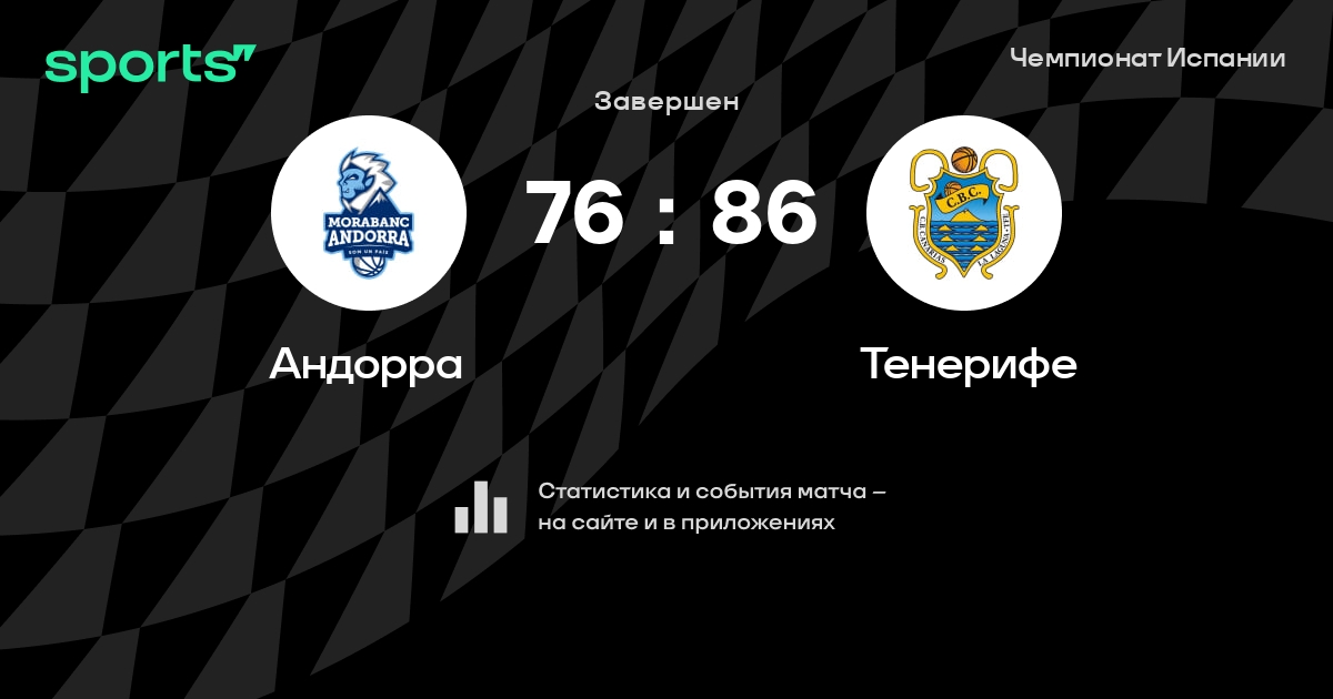 В прошедшем матче в рамках турнира Чемпионат Испании состоялась встреча команд Андорра - Тенерифе в городе Андорра-ла-Велья (Андорра) на стадионе Полиэспортиу де Андорра (вместимость - 5000)