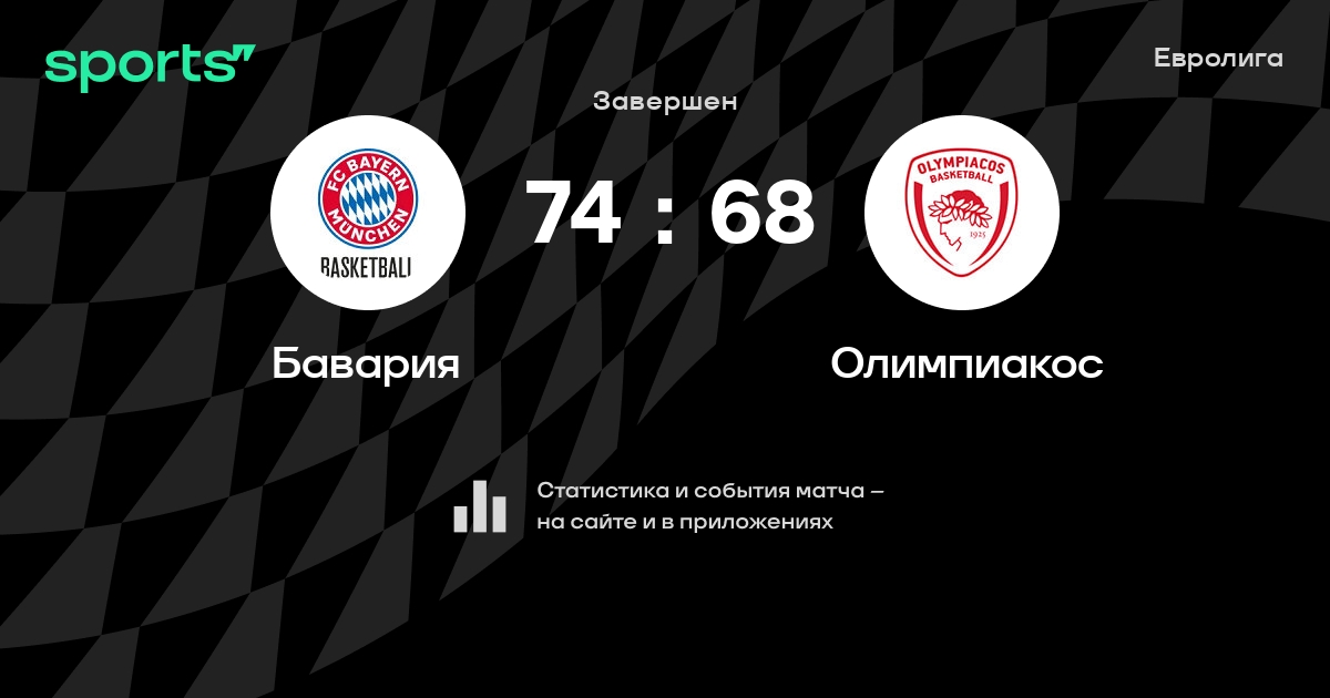 В прошедшем матче в рамках турнира Евролига состоялась встреча команд Бавария - Олимпиакос в городе Мюнхен (Германия) на стадионе BMW Парк (вместимость - 6700)