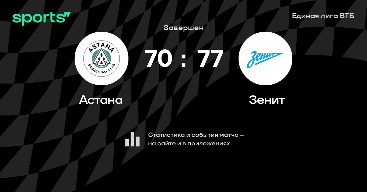 В прошедшем матче в рамках турнира Единая лига ВТБ состоялась встреча команд Астана - Зенит в городе Нур-Султан (Казахстан) на стадионе Велотрек Сарыарка (вместимость - 8000)