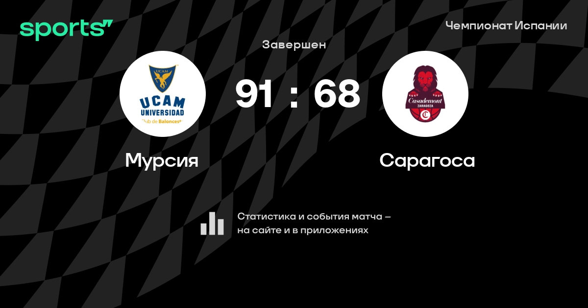 В прошедшем матче в рамках турнира Чемпионат Испании состоялась встреча команд Мурсия - Сарагоса в городе Murcia на стадионе Palacio Municipal De Deportes