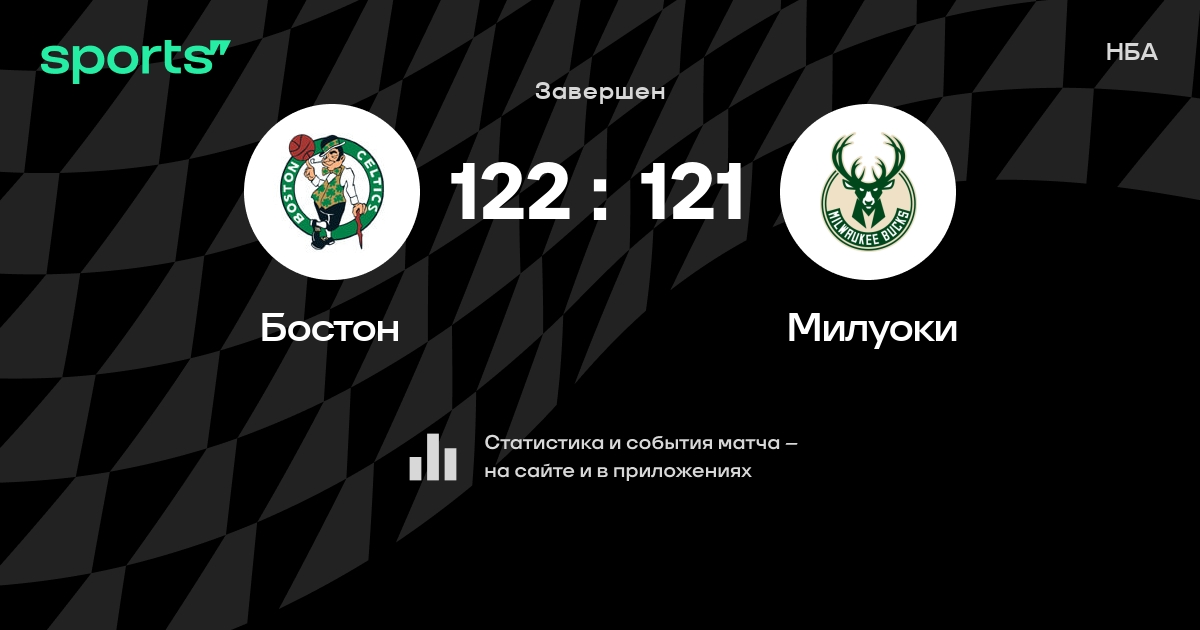 В прошедшем матче в рамках турнира НБА состоялась встреча команд Бостон - Милуоки в городе Бостон (США) на стадионе TD Garden (вместимость - 18624) со счетом 122 : 121.