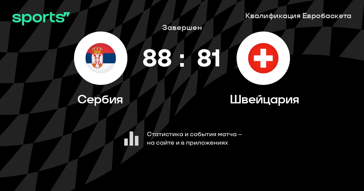 В прошедшем матче в рамках турнира Квалификация Евробаскета состоялась встреча команд Сербия - Швейцария в городе Тбилиси (Грузия) на стадионе Дворец спорта (вместимость - 9700)