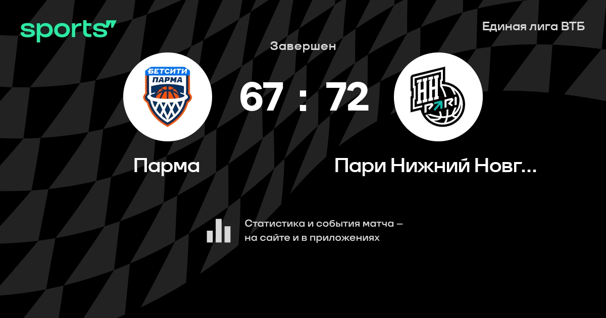 В прошедшем матче в рамках турнира Единая лига ВТБ состоялась встреча команд Парма - Пари Нижний Новгород в городе Пермь (Россия) на стадионе УДС Молот (вместимость - 7000)