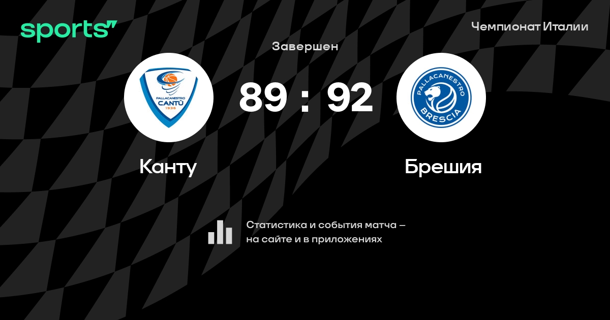В прошедшем матче в рамках турнира Чемпионат Италии состоялась встреча команд Канту - Брешия в городе на стадионе PalaBancoDesio со счетом 89 : 92.