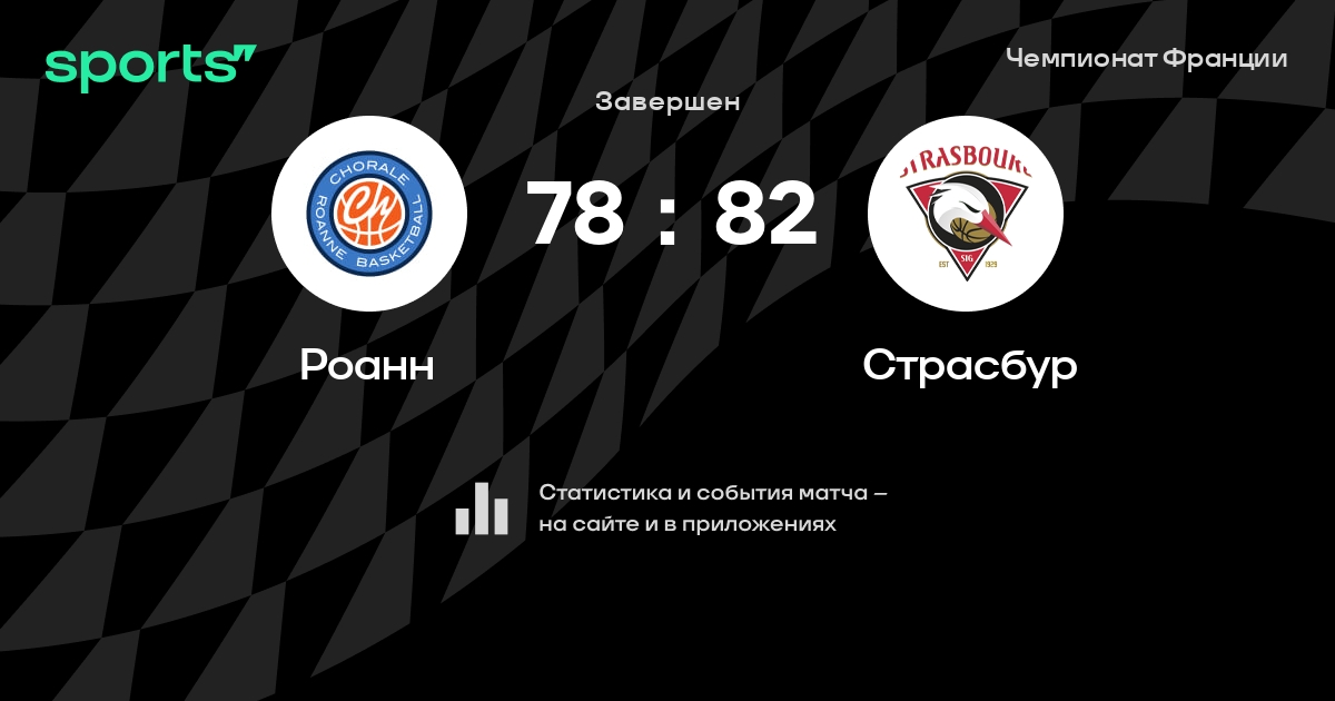 В прошедшем матче в рамках турнира Чемпионат Франции состоялась встреча команд Роанн - Страсбур в городе на стадионе Halle André-Vacheresse со счетом 78 : 82.