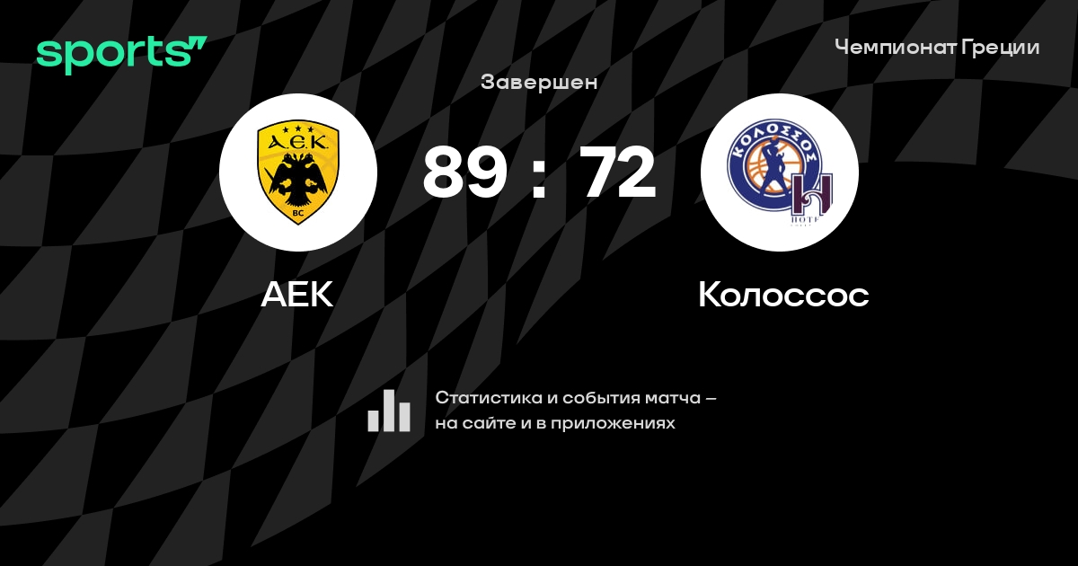 В прошедшем матче в рамках турнира Чемпионат Греции состоялась встреча команд АЕК - Колоссос в городе Афины (Греция) на стадионе Олимпийский спортивный центр (O.A.K.A.) (вместимость - 19250)