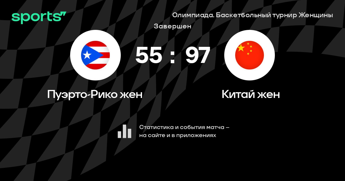 В прошедшем матче в рамках турнира Олимпиада. Баскетбольный турнир Женщины состоялась встреча команд Пуэрто-Рико жен - Китай жен в городе Saitama на стадионе Saitama Super Arena