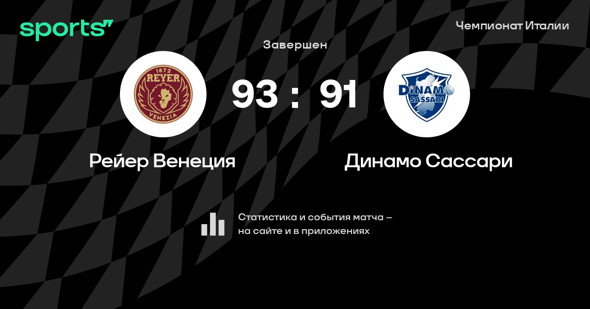 В прошедшем матче в рамках турнира Чемпионат Италии Четвертьфинал состоялась встреча команд Рейер Венеция - Динамо Сассари в городе на стадионе Palasport Taliercio