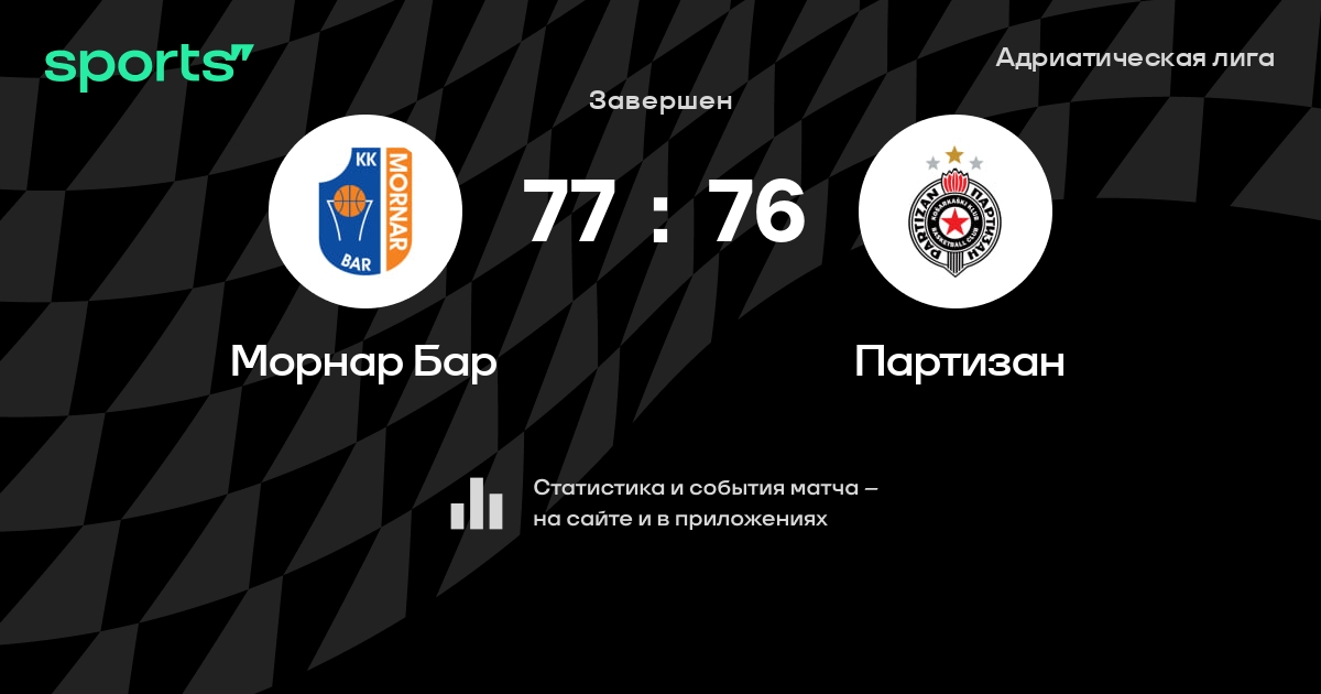 В прошедшем матче в рамках турнира Адриатическая лига состоялась встреча команд Морнар Бар - Партизан в городе на стадионе Topolica со счетом 77 : 76.