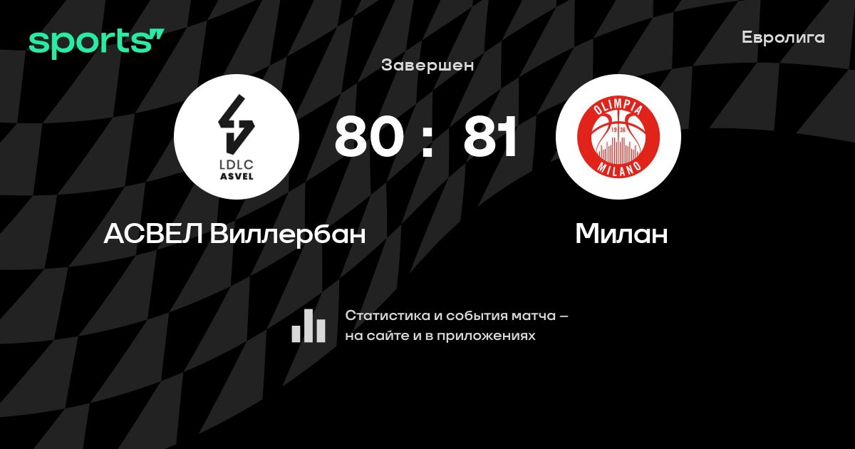 В прошедшем матче в рамках турнира Евролига состоялась встреча команд АСВЕЛ Виллербан - Милан в городе Виллербанн (Франция) на стадионе Астробаль (вместимость - 5556)