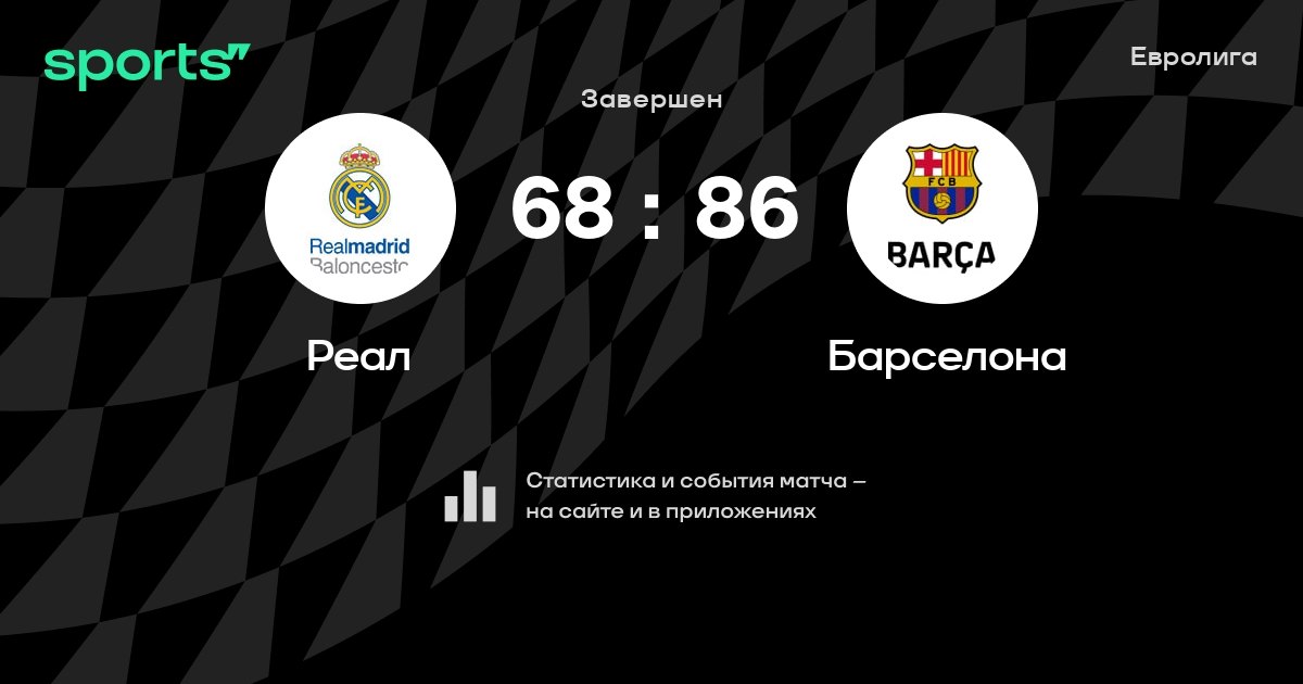 В прошедшем матче в рамках турнира Евролига состоялась встреча команд Реал - Барселона в городе Мадрид (Испания) на стадионе Мовистар Арена (вместимость - 15000)