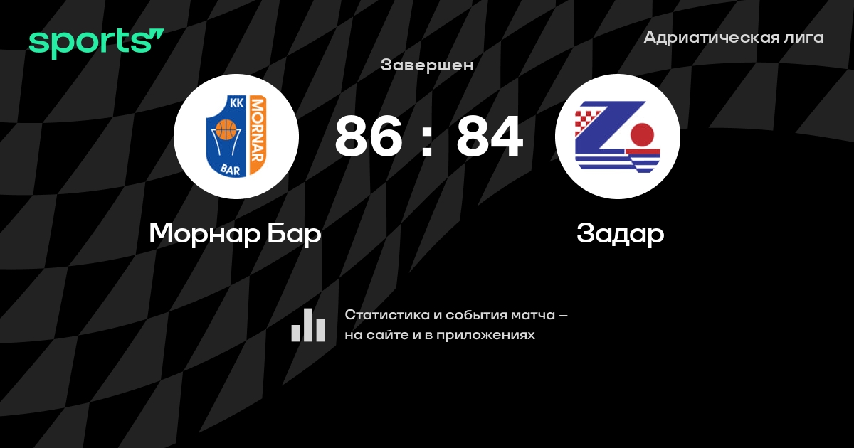 В прошедшем матче в рамках турнира Адриатическая лига состоялась встреча команд Морнар Бар - Задар в городе на стадионе Topolica со счетом 86 : 84.
