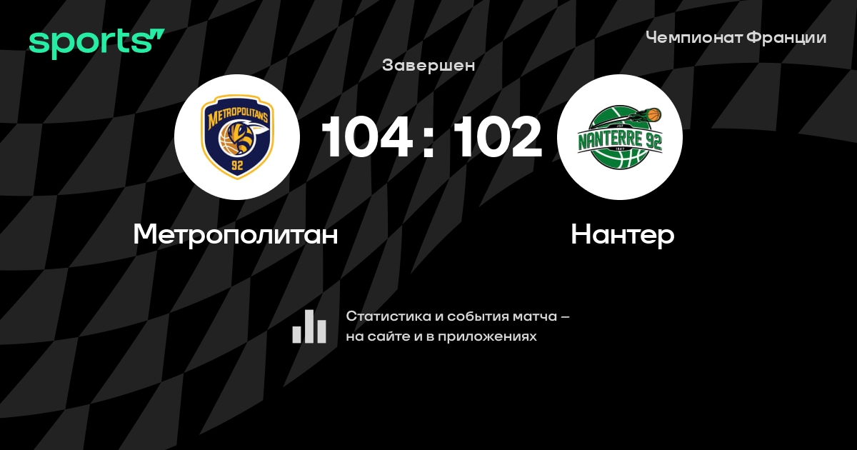 В прошедшем матче в рамках турнира Чемпионат Франции состоялась встреча команд Метрополитан - Нантер в городе на стадионе Palais des Sports Marcel Cerdan