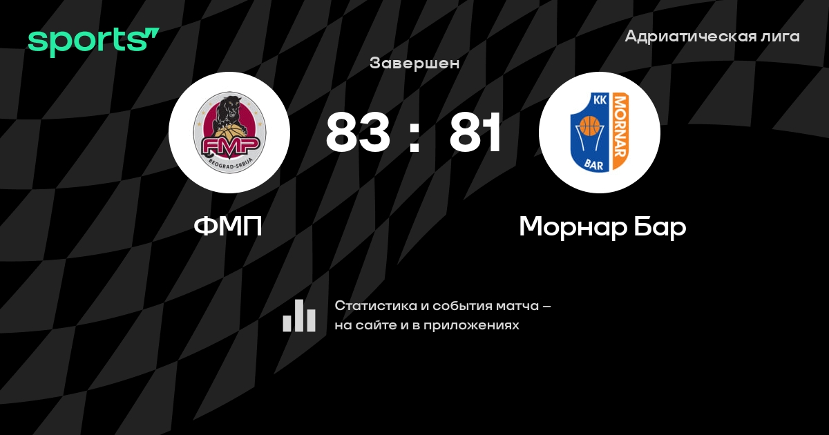 В прошедшем матче в рамках турнира Адриатическая лига состоялась встреча команд ФМП - Морнар Бар в городе на стадионе Košarkaška dvorana FMP со счетом 83 : 81.