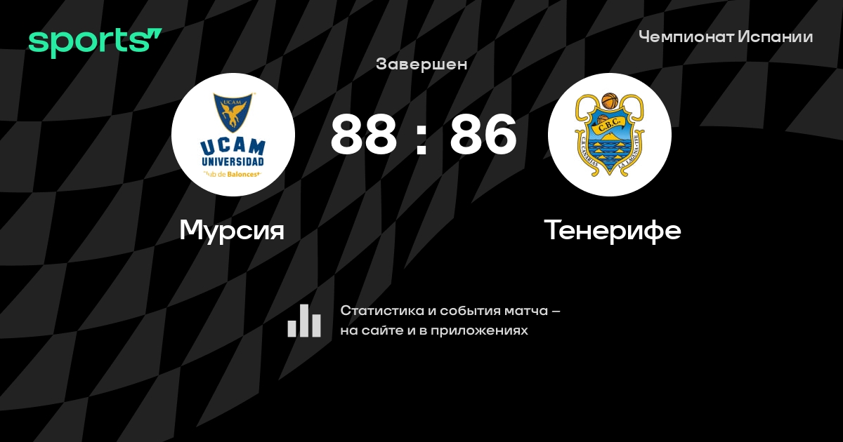 В прошедшем матче в рамках турнира Чемпионат Испании состоялась встреча команд Мурсия - Тенерифе в городе Murcia на стадионе Palacio Municipal De Deportes