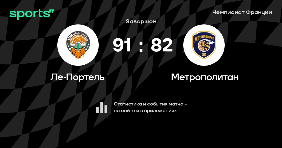 В прошедшем матче в рамках турнира Чемпионат Франции состоялась встреча команд Ле-Портель - Метрополитан в городе на стадионе Le Chaudron со счетом 91 : 82.