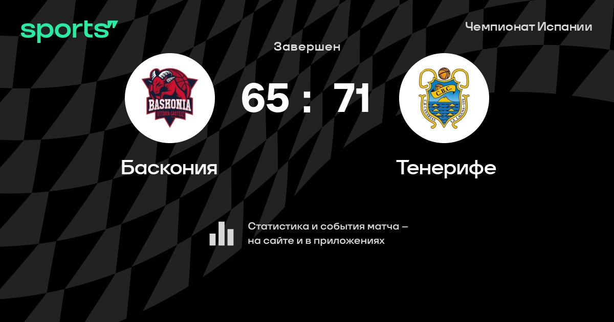 В прошедшем матче в рамках турнира Чемпионат Испании состоялась встреча команд Баскония - Тенерифе в городе Витория (Испания) на стадионе Фернандо Буэса Арена (вместимость - 9717)