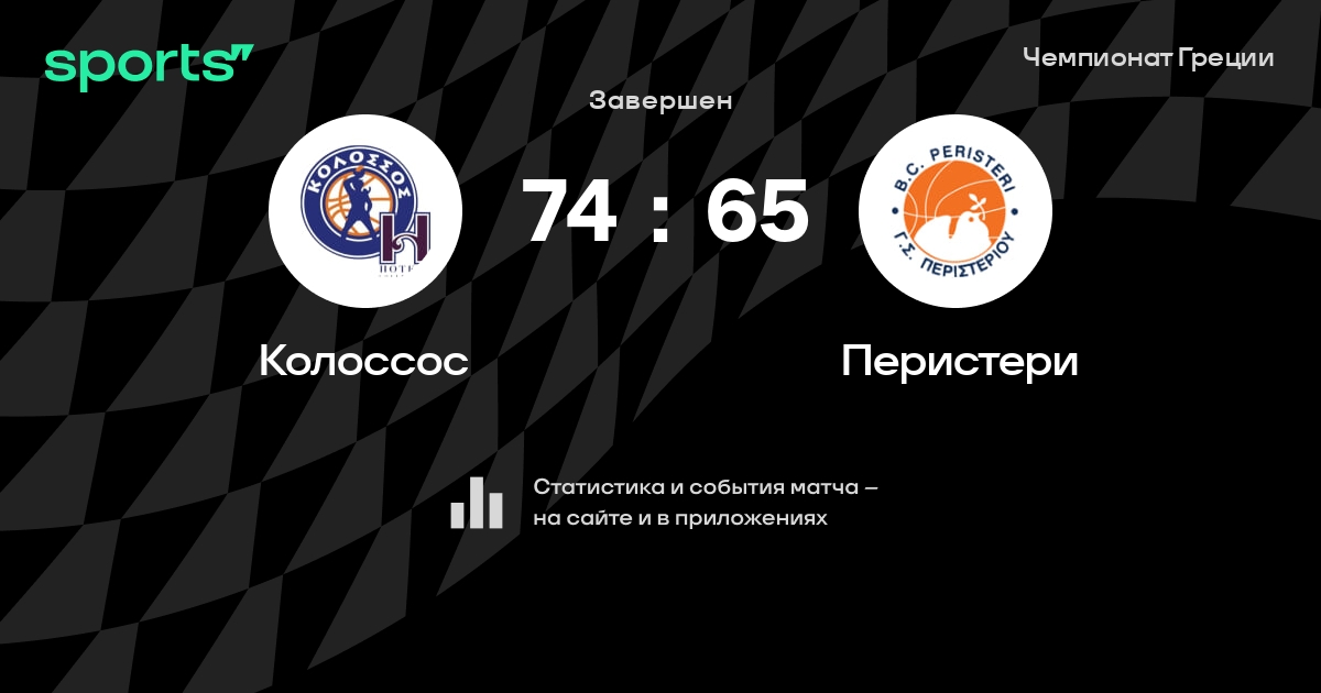 В прошедшем матче в рамках турнира Чемпионат Греции состоялась встреча команд Колоссос - Перистери в городе на стадионе Kleiso Gymnastirio Kallitheas Rodou