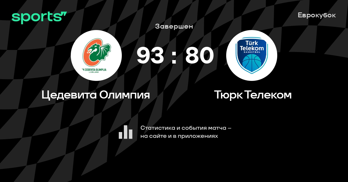 В прошедшем матче в рамках турнира Еврокубок 1/8 финала состоялась встреча команд Цедевита Олимпия - Тюрк Телеком в городе на стадионе Dvorana Stožice