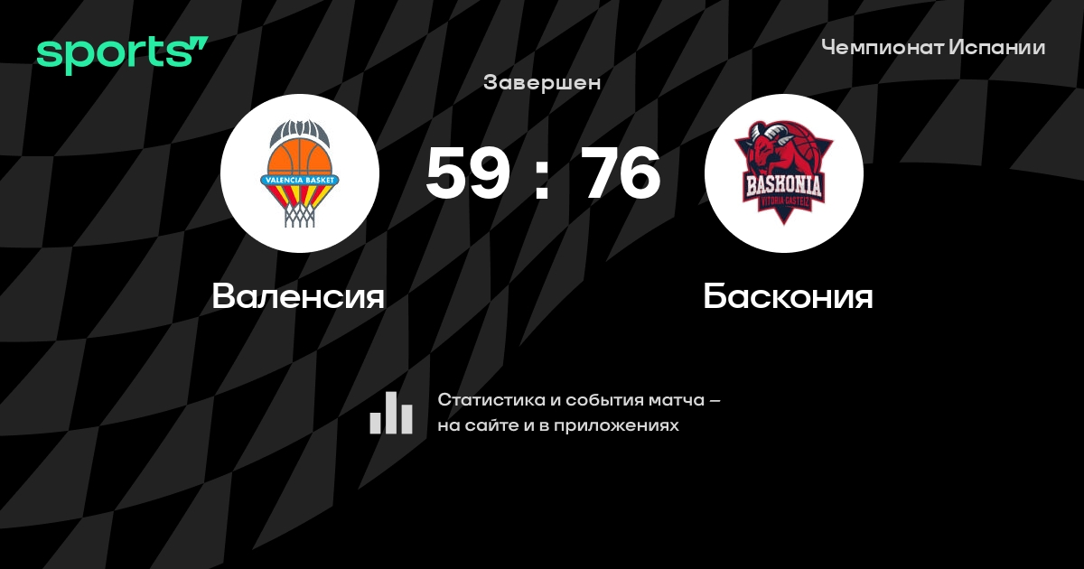 В прошедшем матче в рамках турнира Чемпионат Испании Четвертьфинал состоялась встреча команд Валенсия - Баскония в городе Валенсия (Испания) на стадионе Ла Фонтета (вместимость - 9000)