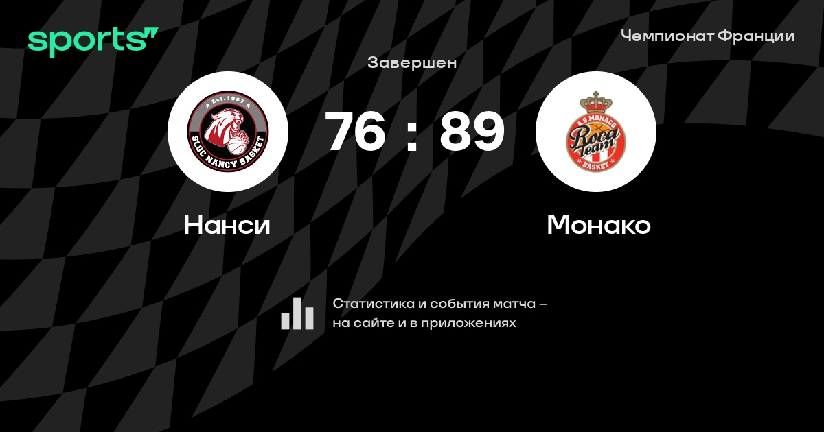 В прошедшем матче в рамках турнира Чемпионат Франции состоялась встреча команд Нанси - Монако в городе на стадионе Palais des Sports Jean Weille со счетом 76 : 89.