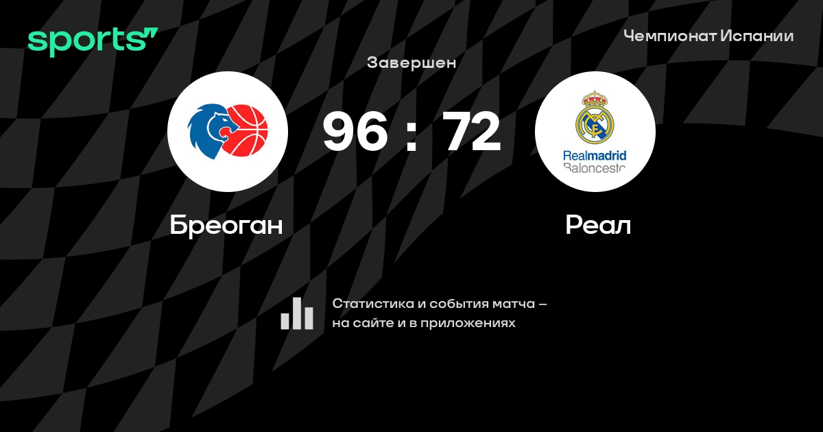 В прошедшем матче в рамках турнира Чемпионат Испании состоялась встреча команд Бреоган - Реал в городе на стадионе Pazo Provincial dos Deportes de Lugo со счетом 96 : 72.
