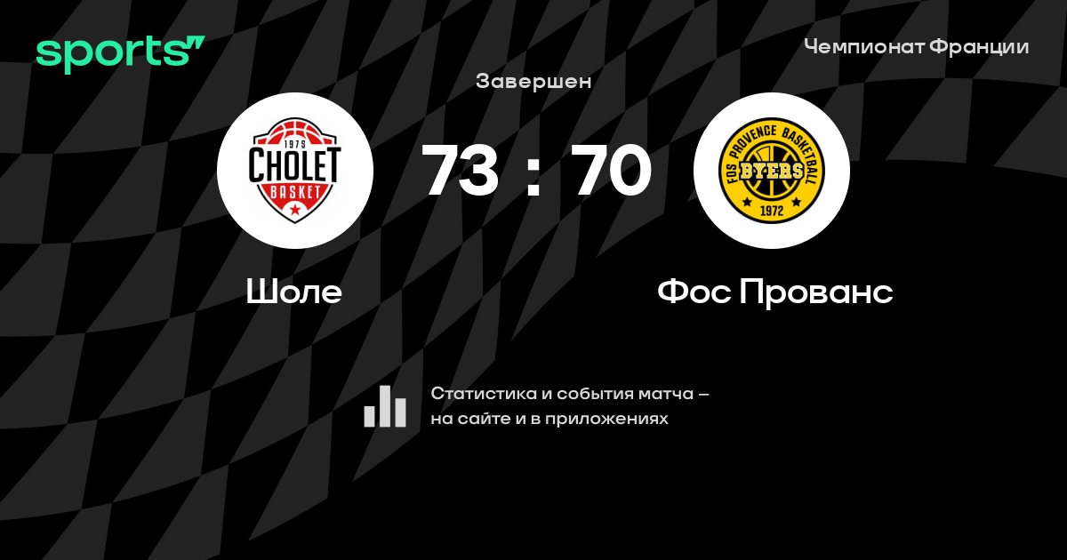 В прошедшем матче в рамках турнира Чемпионат Франции состоялась встреча команд Шоле - Фос Прованс в городе на стадионе Salle de la Meilleraie со счетом 73 : 70.