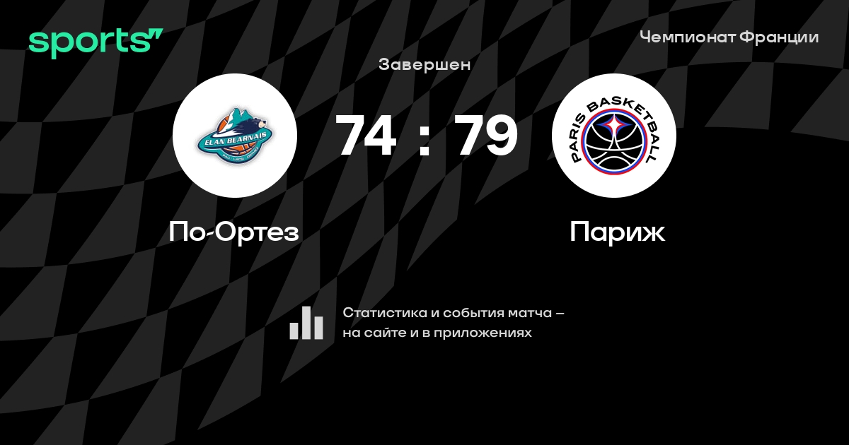 В прошедшем матче в рамках турнира Чемпионат Франции состоялась встреча команд По-Ортез - Париж в городе Nanterre на стадионе Palais des Sports со счетом 74 : 79.