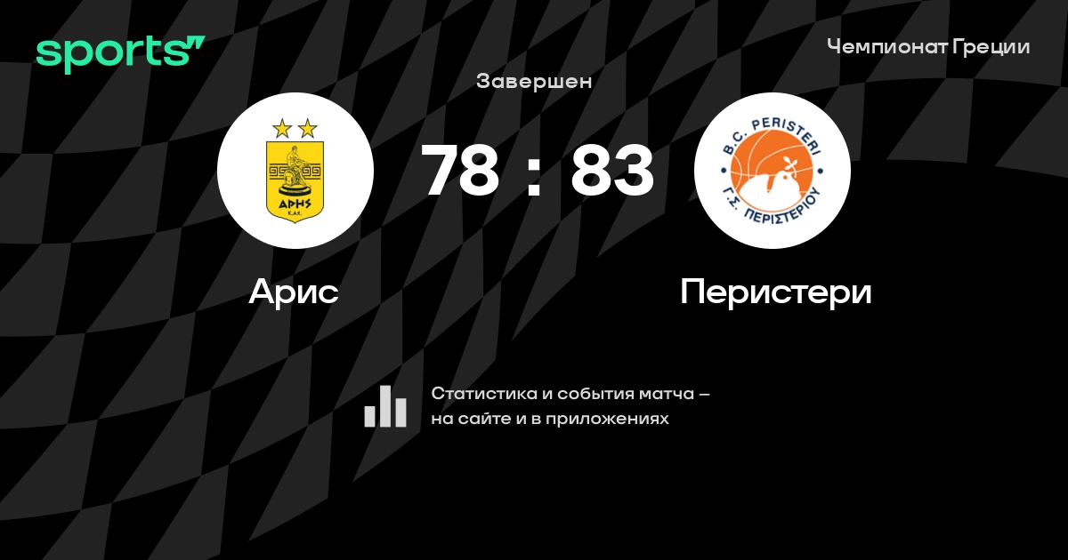 В прошедшем матче в рамках турнира Чемпионат Греции состоялась встреча команд Арис - Перистери в городе на стадионе Sala Alexandreio Melathron Nikos Galis