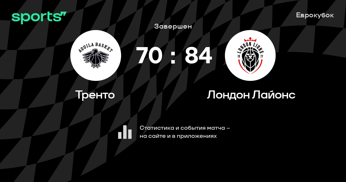 В прошедшем матче в рамках турнира Еврокубок состоялась встреча команд Тренто - Лондон Лайонс в городе на стадионе PalaTrento со счетом 70 : 84.