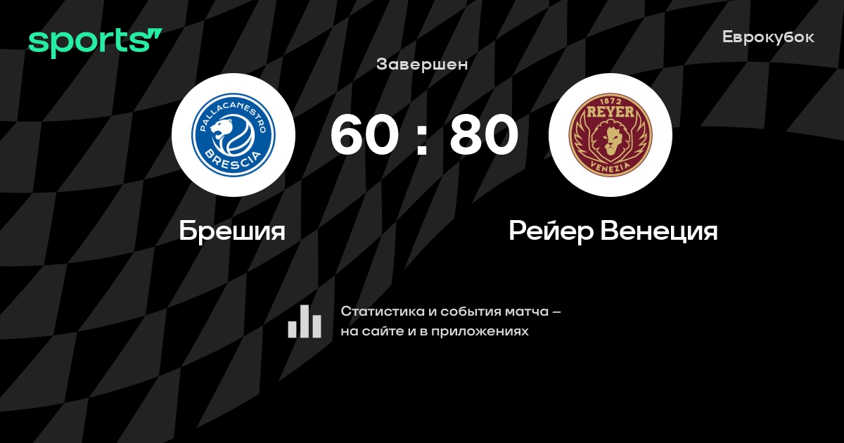 В прошедшем матче в рамках турнира Еврокубок состоялась встреча команд Брешия - Рейер Венеция в городе на стадионе PalaLeonessa со счетом 60 : 80.