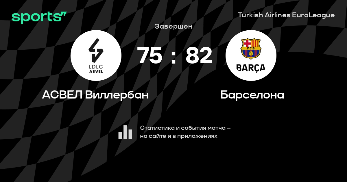 В прошедшем матче в рамках турнира Turkish Airlines EuroLeague состоялась встреча команд АСВЕЛ Виллербан - Барселона в городе Виллербанн (Франция) на стадионе Астробаль (вместимость - 5556)