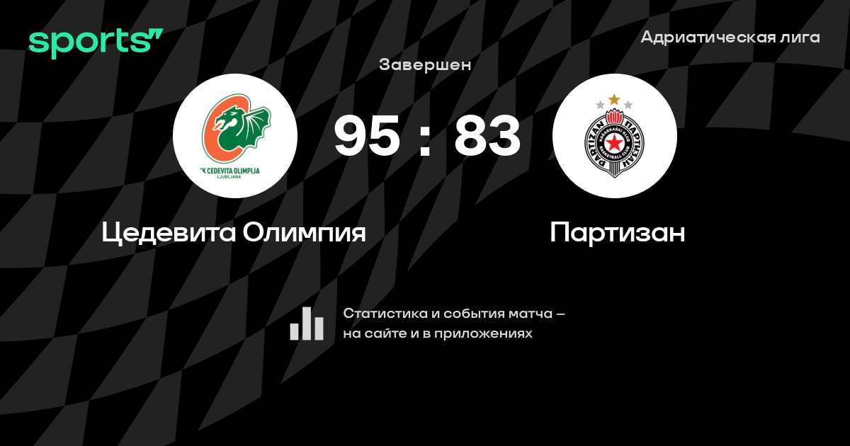 В прошедшем матче в рамках турнира Адриатическая лига Полуфинал состоялась встреча команд Цедевита Олимпия - Партизан в городе на стадионе Dvorana Stožice