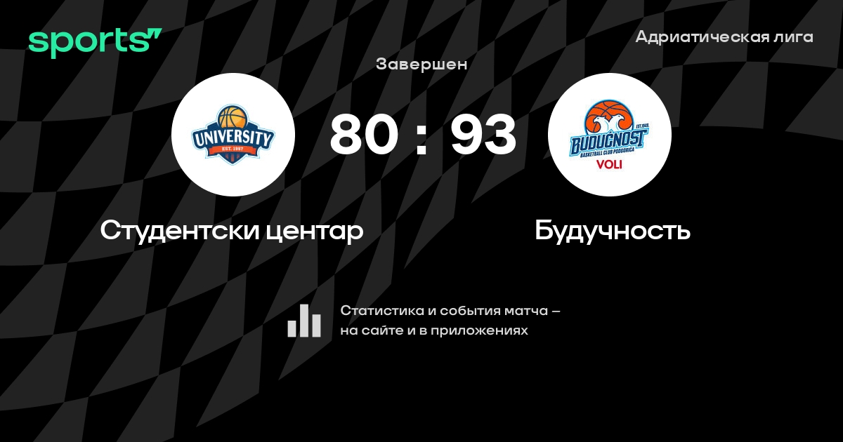 В прошедшем матче в рамках турнира Адриатическая лига состоялась встреча команд Студентски центар - Будучность в городе Подгорица (Черногория) на стадионе Морача (вместимость - 6000)