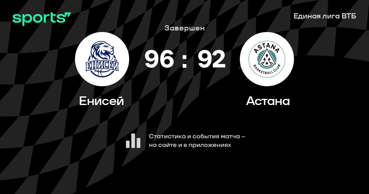 В прошедшем матче в рамках турнира Единая лига ВТБ состоялась встреча команд Енисей - Астана в городе Красноярск (Россия) на стадионе Арена-Север со счетом 96 : 92.