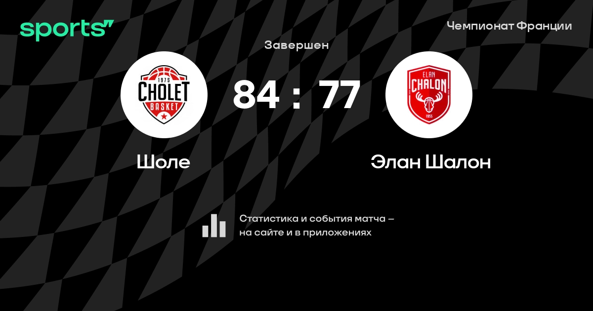 В прошедшем матче в рамках турнира Чемпионат Франции состоялась встреча команд Шоле - Элан Шалон в городе на стадионе Salle de la Meilleraie со счетом 84 : 77.