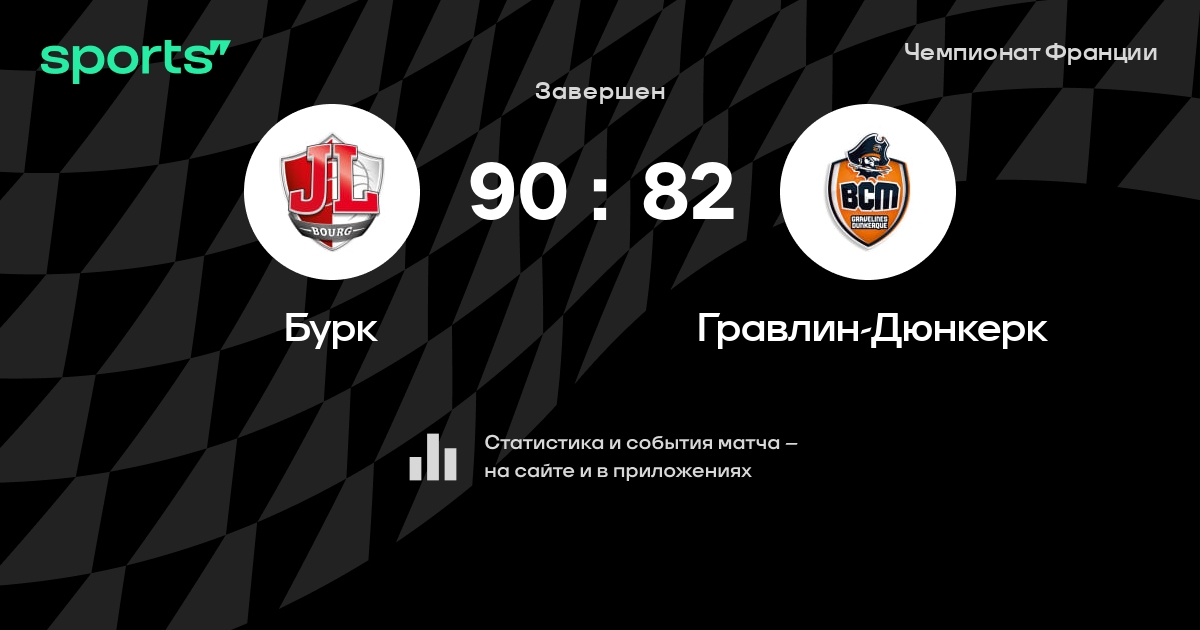 В прошедшем матче в рамках турнира Чемпионат Франции состоялась встреча команд Бурк - Гравлин-Дюнкерк в городе на стадионе Ekinox со счетом 90 : 82.