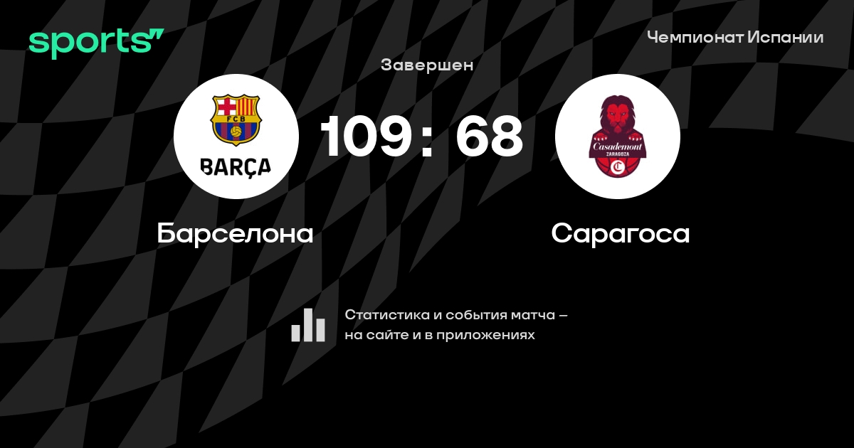 В прошедшем матче в рамках турнира Чемпионат Испании состоялась встреча команд Барселона - Сарагоса в городе Барселона (Испания) на стадионе Палау Блауграна (вместимость - 7585)