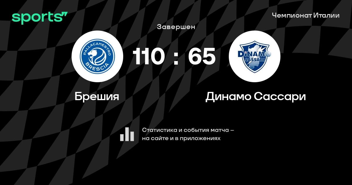 В прошедшем матче в рамках турнира Чемпионат Италии состоялась встреча команд Брешия - Динамо Сассари в городе на стадионе PalaLeonessa со счетом 110 : 65.