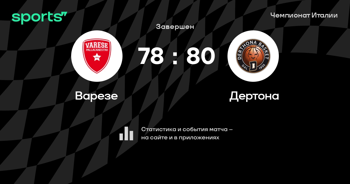 В прошедшем матче в рамках турнира Чемпионат Италии состоялась встреча команд Варезе - Дертона в городе на стадионе Enerxenia Arena со счетом 78 : 80.