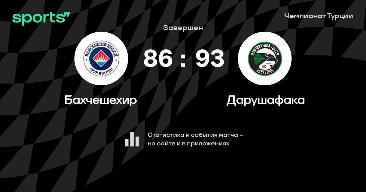 В прошедшем матче в рамках турнира Чемпионат Турции состоялась встреча команд Бахчешехир - Дарушафака в городе Стамбул (Турция) на стадионе Улкер Спортс Арена (вместимость - 13000)