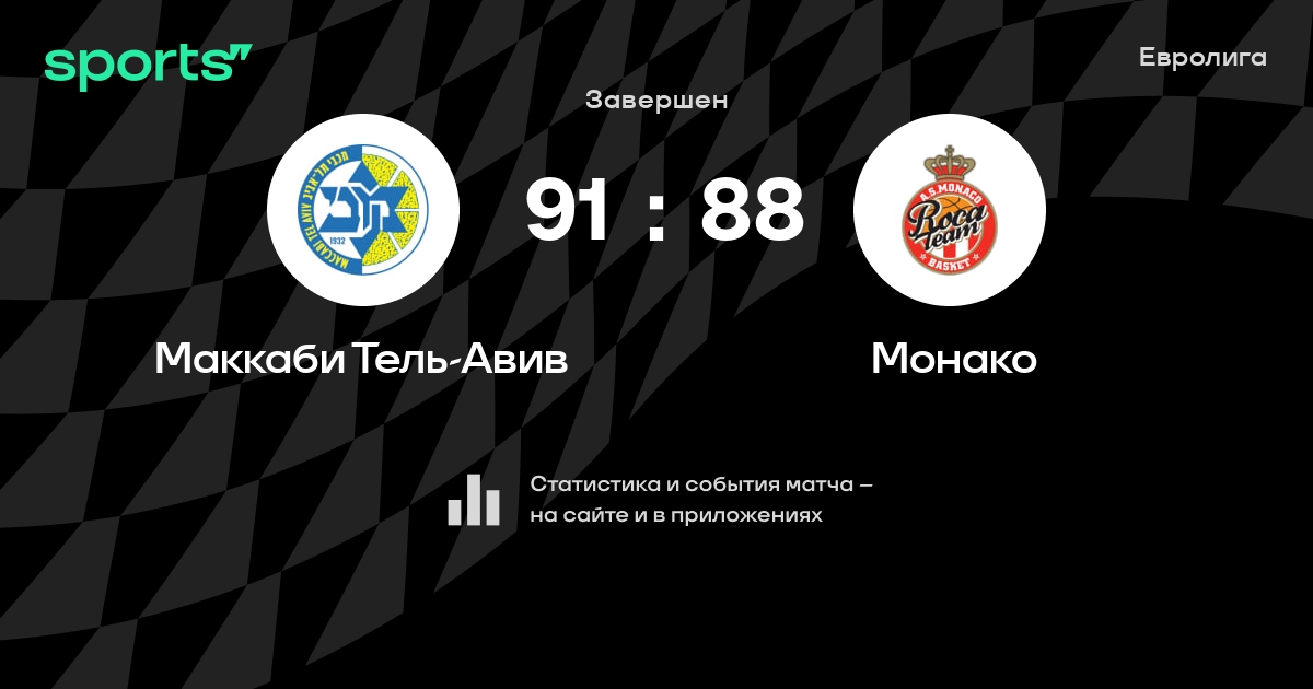 В прошедшем матче в рамках турнира Евролига состоялась встреча команд Маккаби Тель-Авив - Монако в городе Белград (Сербия) на стадионе Александар Николич Холл (вместимость - 7000)