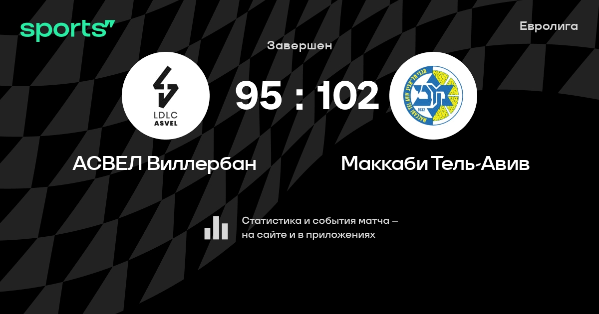 В прошедшем матче в рамках турнира Евролига состоялась встреча команд АСВЕЛ Виллербан - Маккаби Тель-Авив в городе Лион (Франция) на стадионе LDLC Арена (вместимость - 12523)