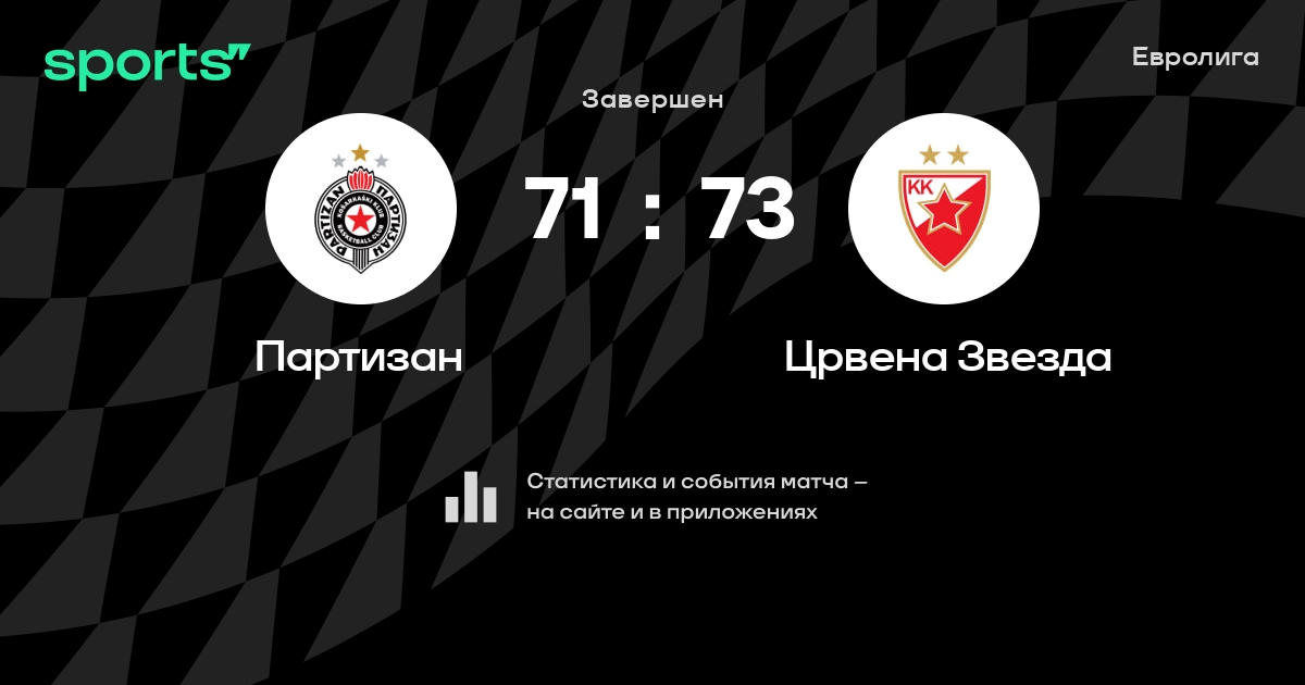 В прошедшем матче в рамках турнира Евролига состоялась встреча команд Партизан - Црвена Звезда в городе Белград (Сербия) на стадионе Белград Арена (вместимость - 22386)