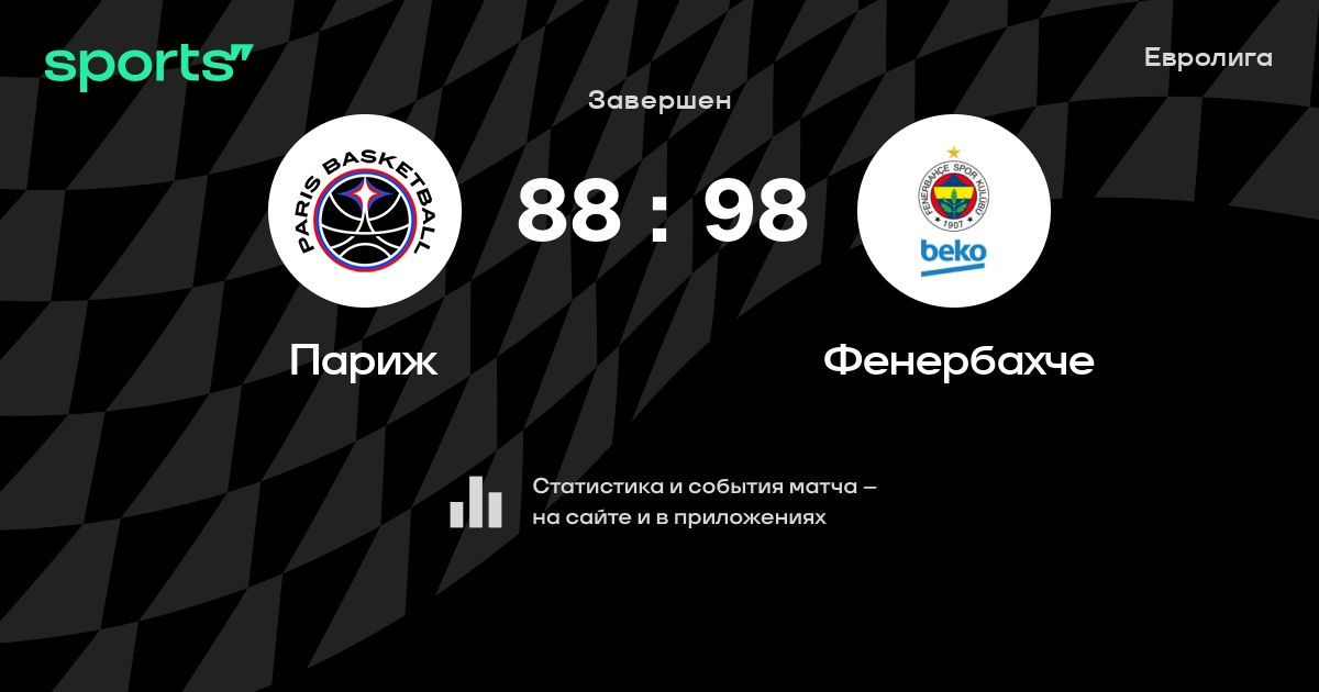 В прошедшем матче в рамках турнира Евролига Четвертьфинал состоялась встреча команд Париж - Фенербахче в городе Париж (Франция) на стадионе Адидас Арена (вместимость - 8000)