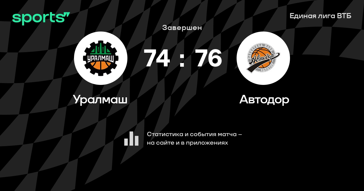 В прошедшем матче в рамках турнира Единая лига ВТБ состоялась встреча команд Уралмаш - Автодор в городе Екатеринбург (Россия) на стадионе ДИВС со счетом 74 : 76.