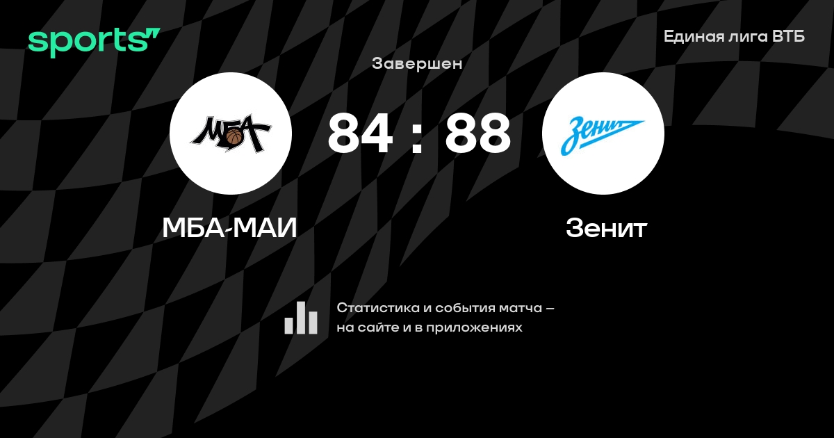 В прошедшем матче в рамках турнира Единая лига ВТБ состоялась встреча команд МБА-МАИ - Зенит в городе Москва (Россия) на стадионе Баскет Холл Москва (вместимость - 5000)